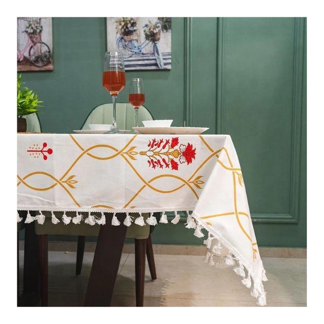 100% Cotton Bohemian Wash Free Cotton Linen Tablecloth Rectangular Waterproof & Oil Resistant Tea Table Cloth Tassel Tablecloth
