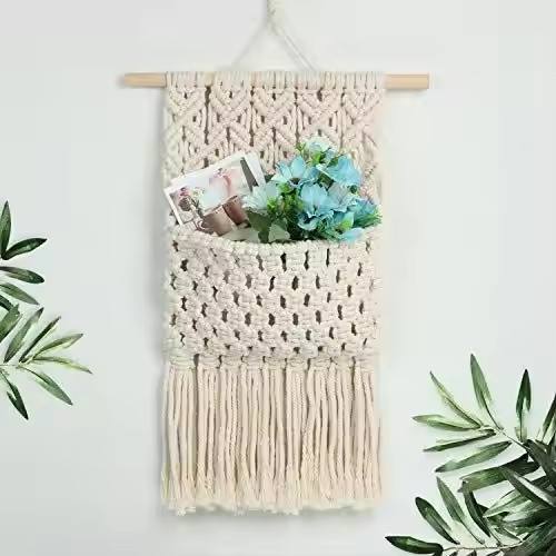100% Cotton Boho Macrame Wall Hanging Modern Design Magazine & Newspaper Organizer Pocket Holder for Diwali Birthday Occasions
