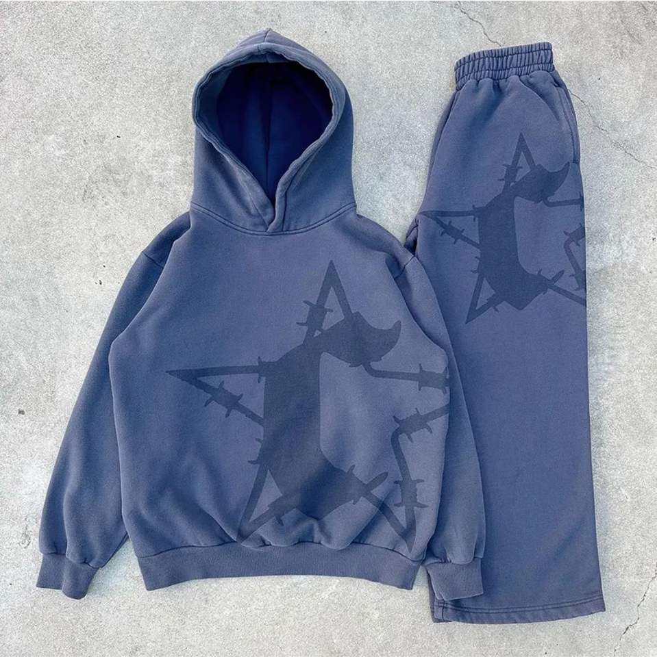 100% Cotton Breathable Fabric Winter for Men Printed Hoodie Sweat Suit Sets Acid Wash Tracksuits by Elson Sports