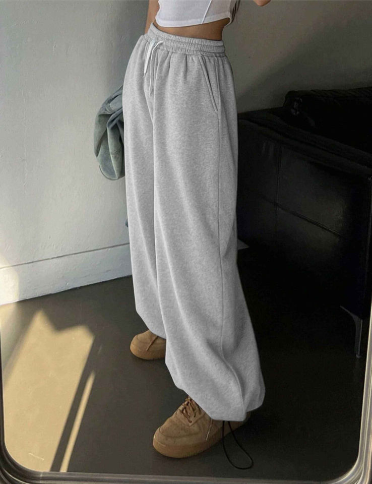 100% Cotton Breathable Soft Baggy Women Sweatpants High Waist Straight Casual Wide Leg Jogger womens Sweat Pants for sale