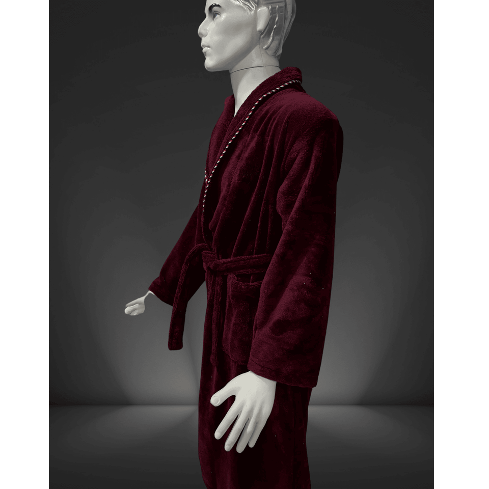 100% Cotton Burgundy Men s Bathrobe Luxury Bath Supplies Patterned Extra Heavy Made in Turkiye