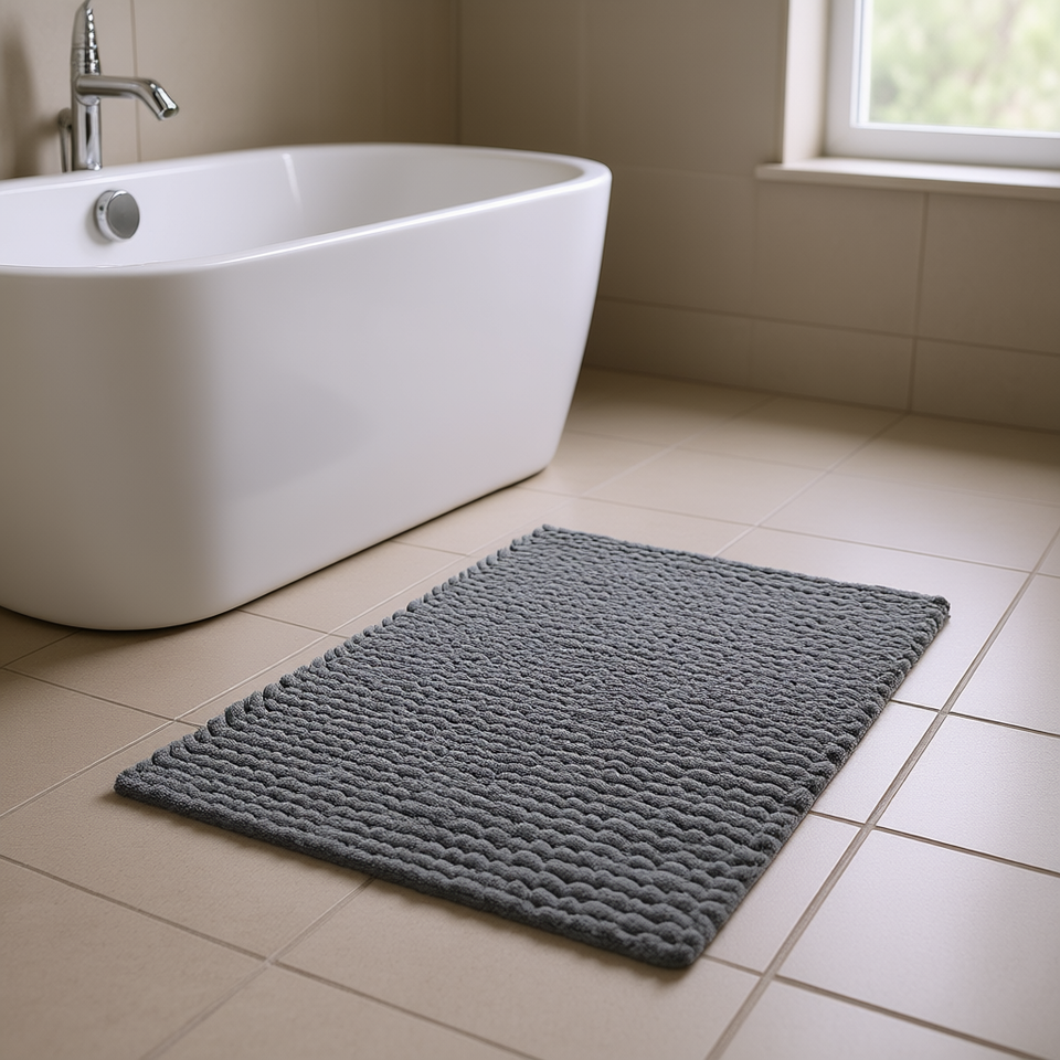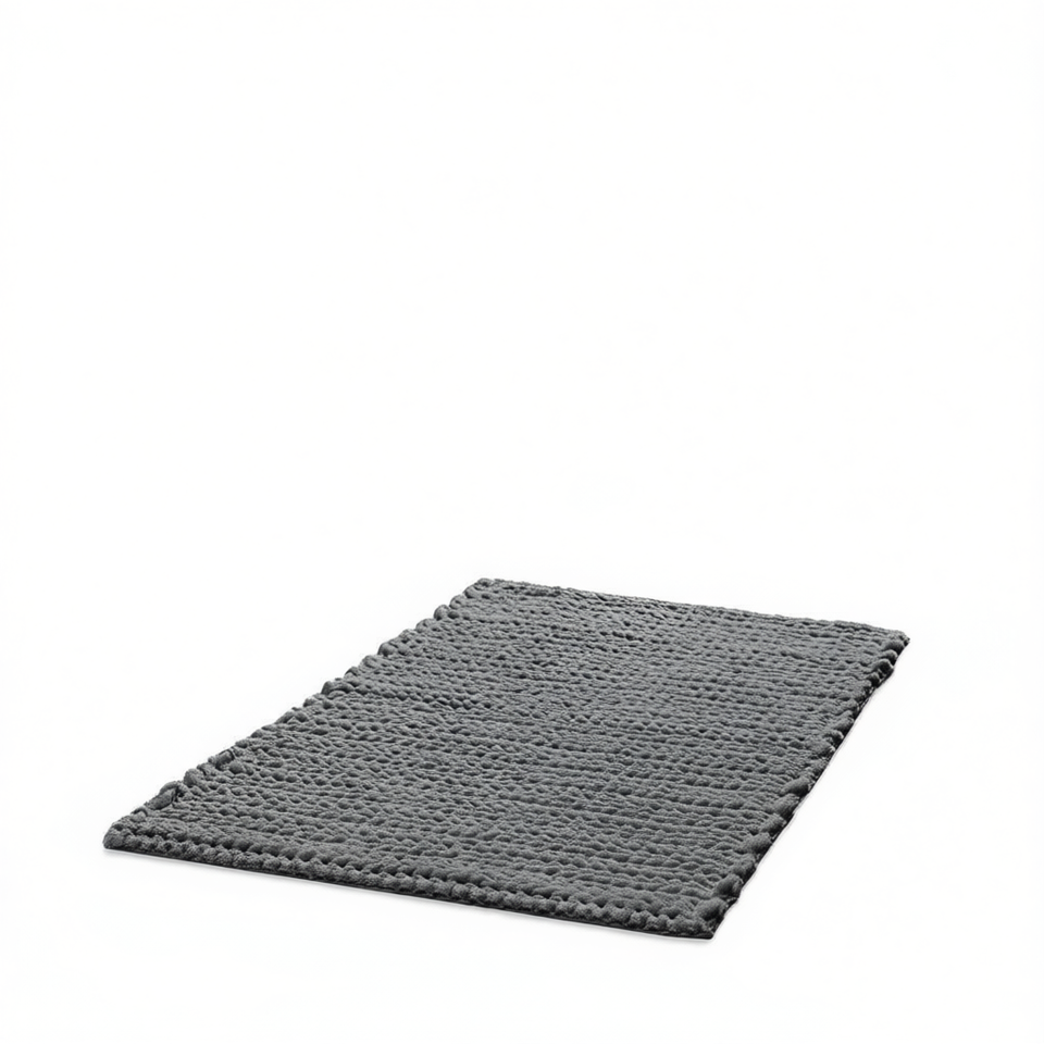 Cotton Chenille Chain Stitch Bath Mat Rug Rectangle Minimalist Knitted Solid Gray 100% Cotton Bathroom Floor Mat