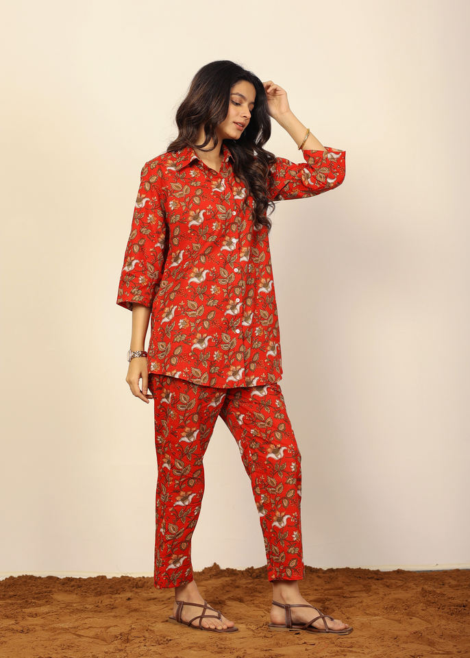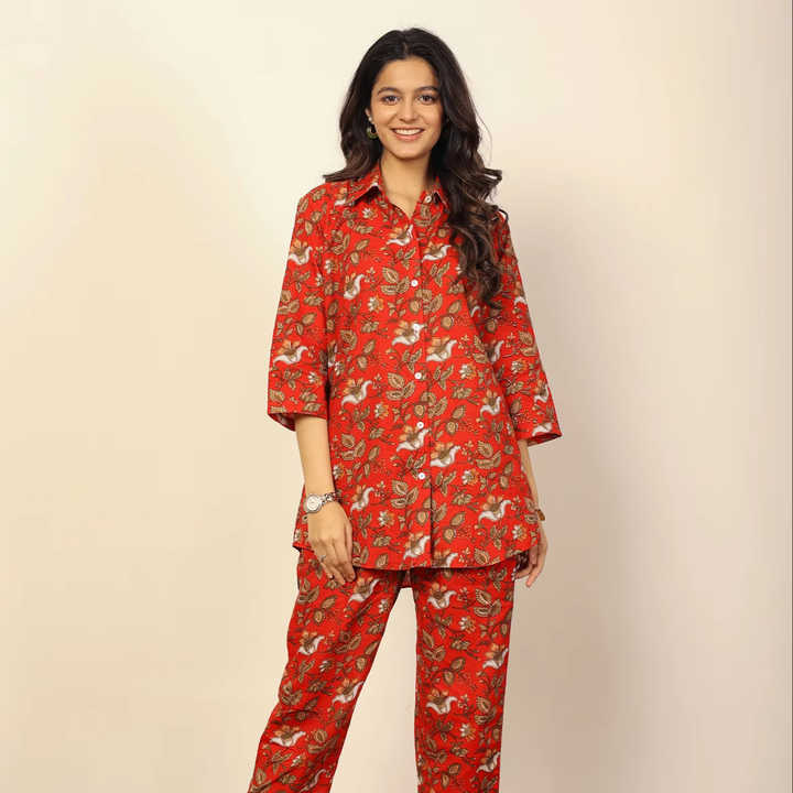 Product Name:Relaxed Co-Ord Set With Collar Neckline Shirt and Pant