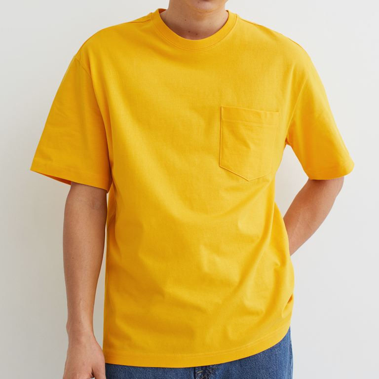 100% Cotton Custom-Made Solid T-Shirt Chest Pocket Men Casual T-Shirt