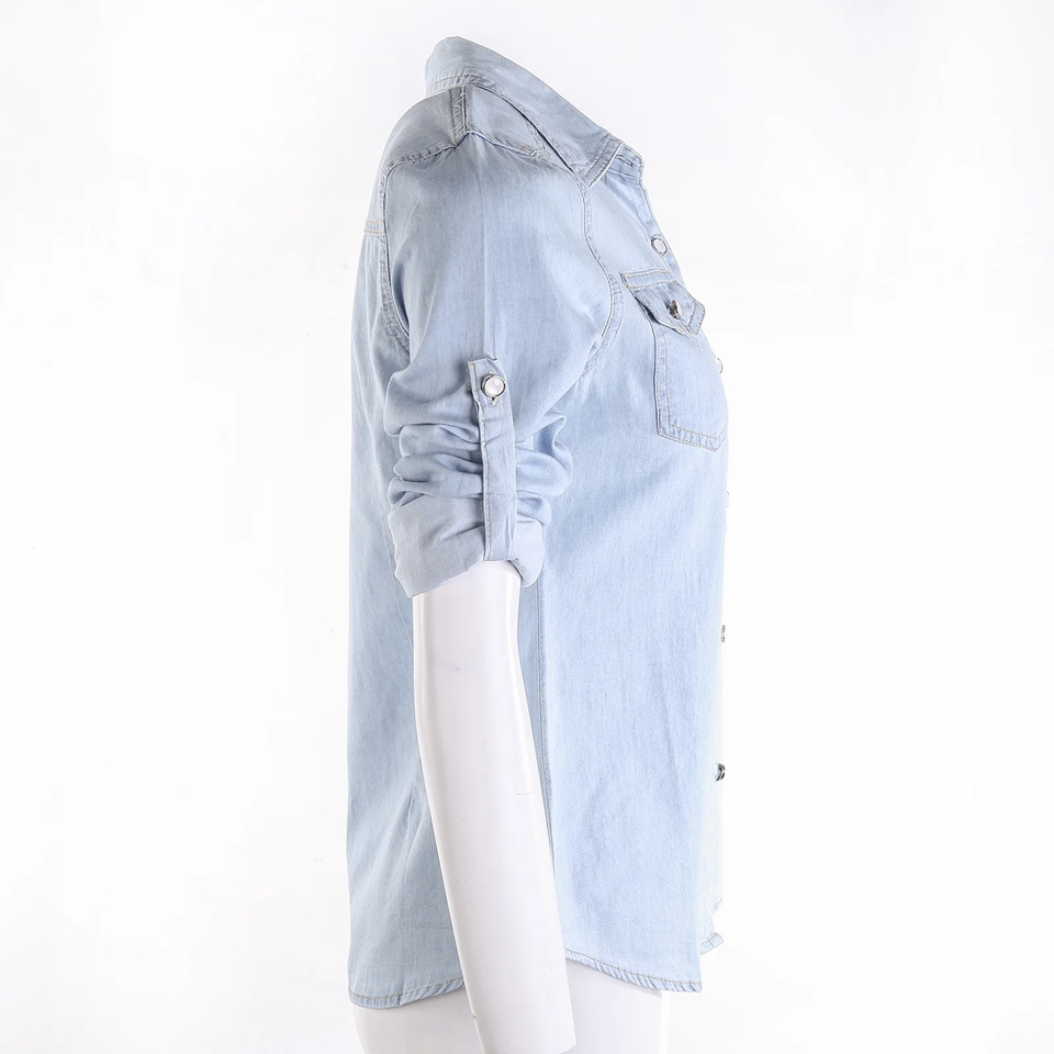100% Cotton Denim Turn-down Collar Button Women's Casual Stylish Breathable Eco-Friendly Anti-Pilling Shirts Spring Autumn