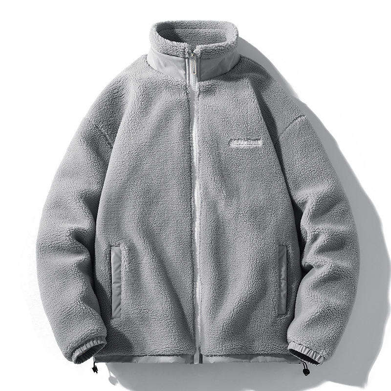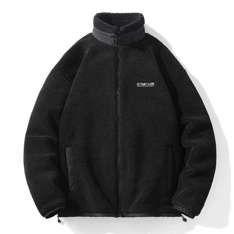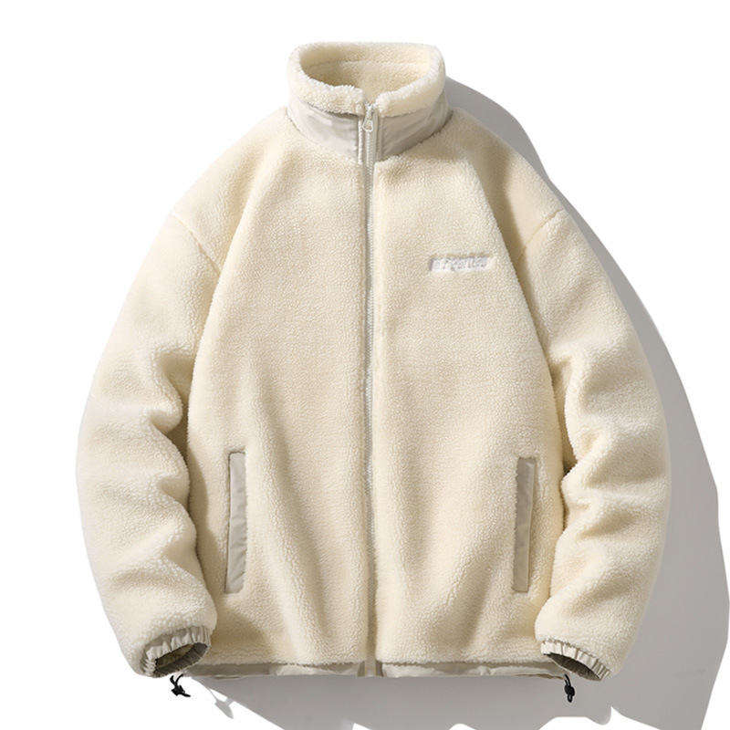 100% Cotton Embroidered Alphabet Hoodie Coat for Men Women Lamb Wool Velvet Loose Stand-Up Collar Beaded Zipper Plain Digital