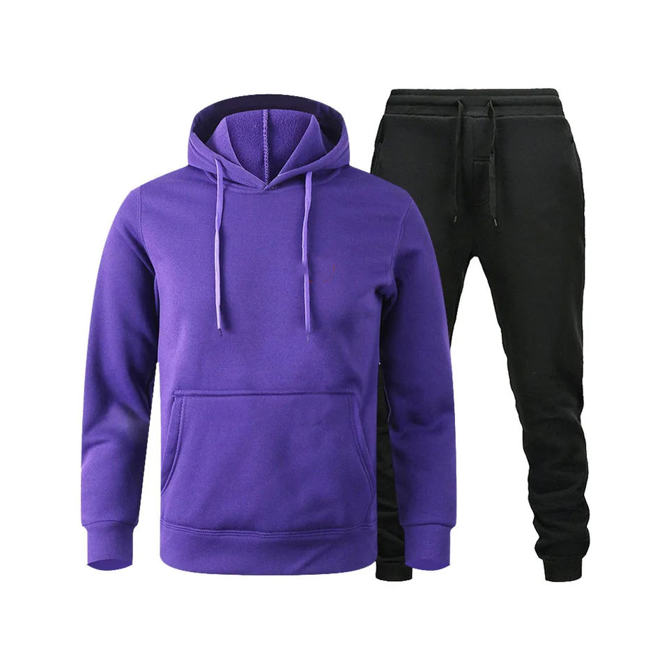 100% Cotton Export Quality Fleece Tracksuit Men Long Sleeve Warm Plus Size Custom Logo Patchwork Jogging Suit in Low Price