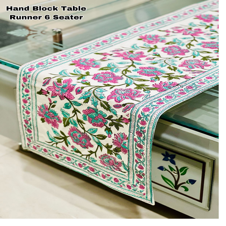 100 % Cotton Fabric,hand Block Printed Table Runners for Home & Hotels for 6 Seater Table & Also for Resale in Multi Colours