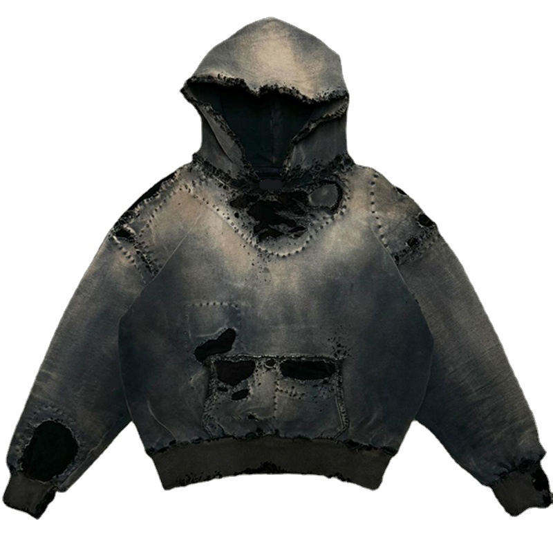 100% Cotton Fleece 450 GSM Tie-Dye Streetwear Hoodie with Black Distress Customize Pullover Design and Custom Logo Embroidery