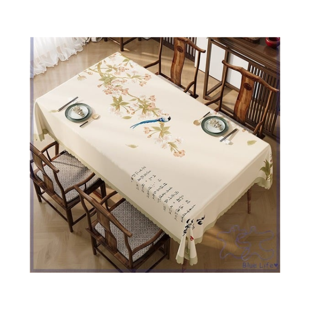 100% Cotton Floral Print Embroidered Table Cloth GOTS Certified 300 TC Easy Wash Fabric Ideal For Wedding Reception Table Decor
