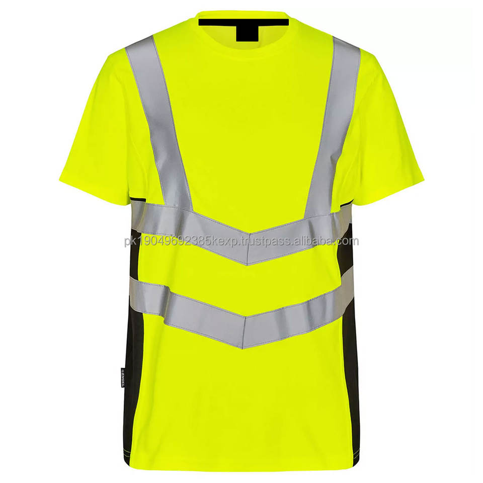 100% Cotton Good Quality Men's Hi Viz Safety T-Shirts Men Short Sleeve Reflective Tape T Shirt work wear Construction T-Shirts
