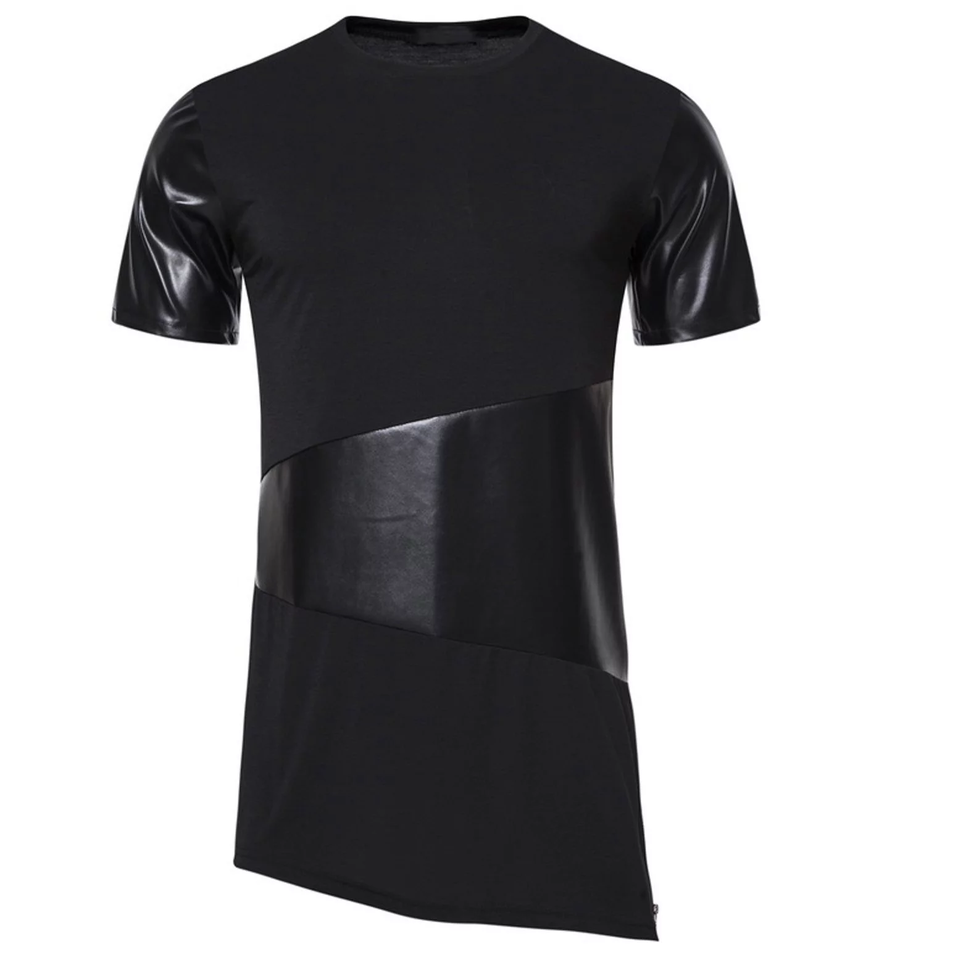 100% Cotton Half Sleeve T Shirt With Leather Sleeved Top Quality Loose Boxy Fit Oversized Chest Pocket Leather Sleeve Tees Shirt