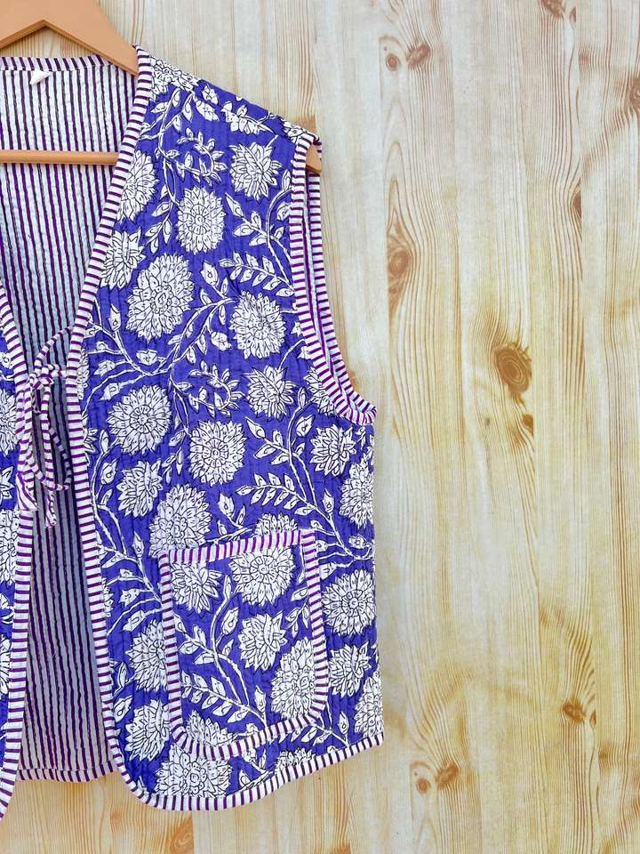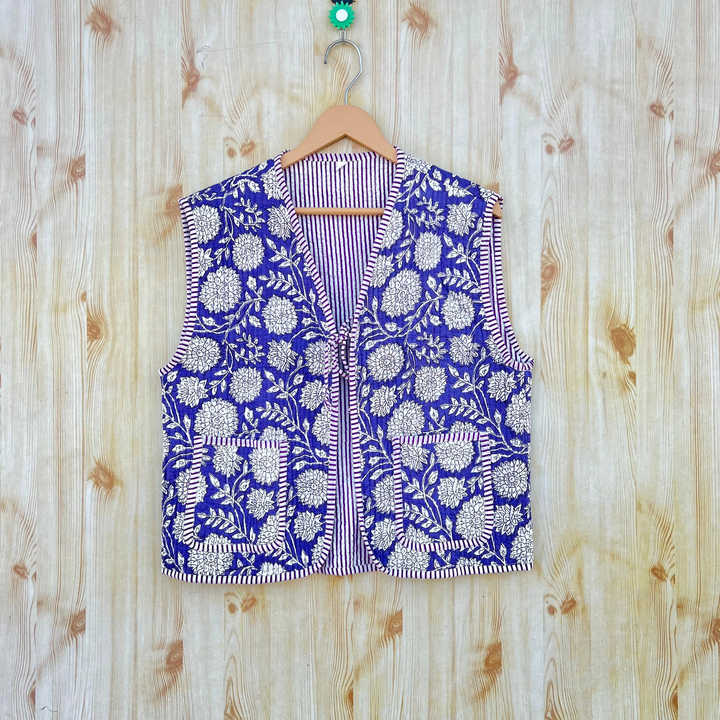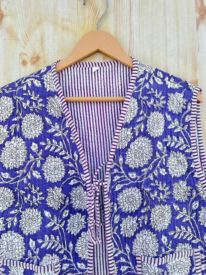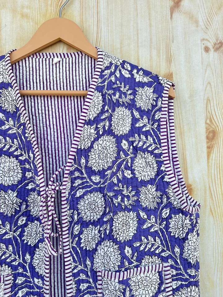 100% Cotton Handmade Bohemian Vest Coat Women Hippie Patchwork Burfi Quilted Knitted With Pockets