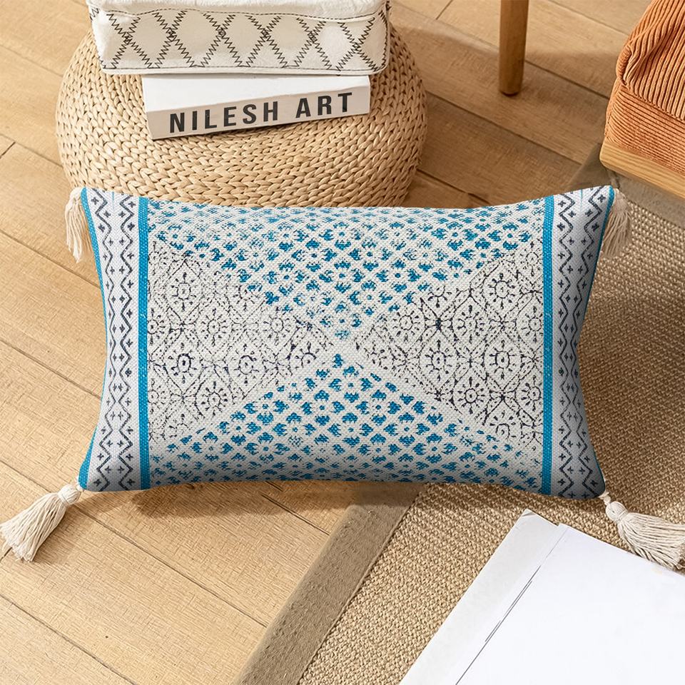 100% Cotton Handmade Pillow Case Modern Block Printed Poise Cushion Cover Vintage Zigzag Floral Striped Geometric Portable Rest