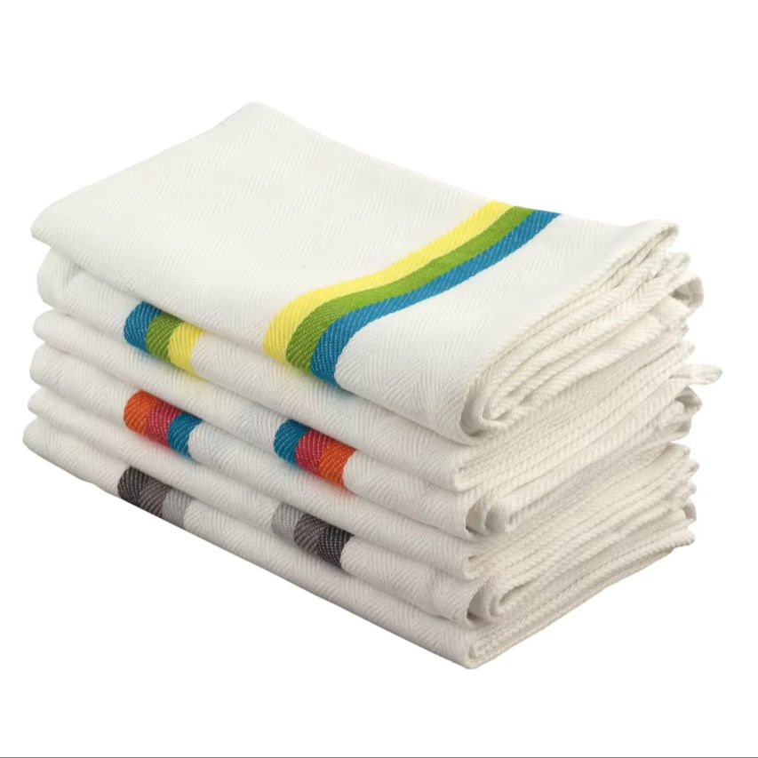 100% Cotton Herring Bone Towel for Home Beach Kitchen Child Restaurant Turquoise Color Woven Sustainable Linen Microfiber