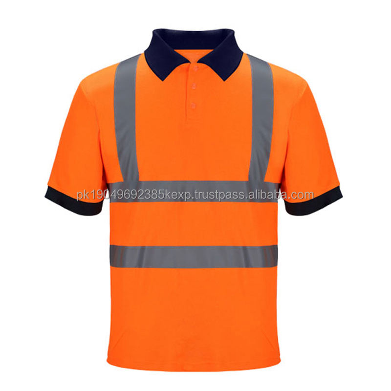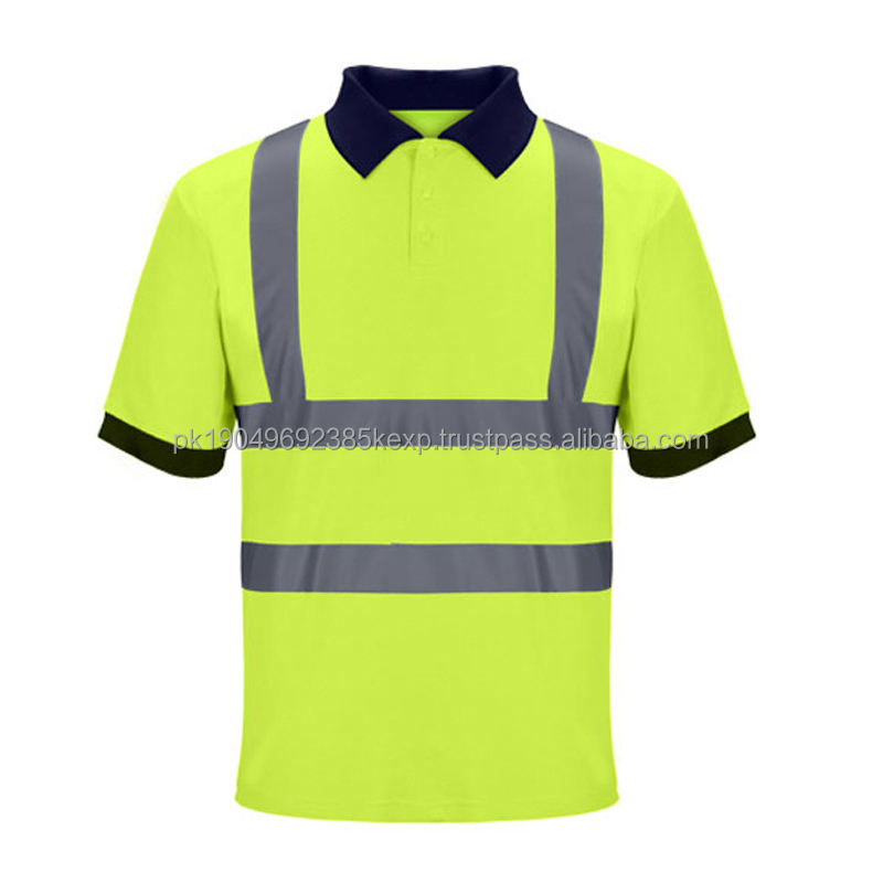 100% Cotton Hi Vis Work Wear Polo Shirt Breathable Embroidered Reflective Safety Clothing High Visibility Print Golf Polo