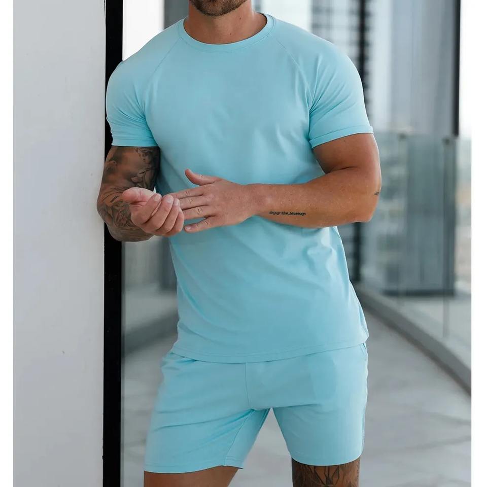100% Cotton High Quality Men's Twin Set Two Piece Latest Design Outdoor Wear Men's T-shirt and Shorts Twin Sets Breathable