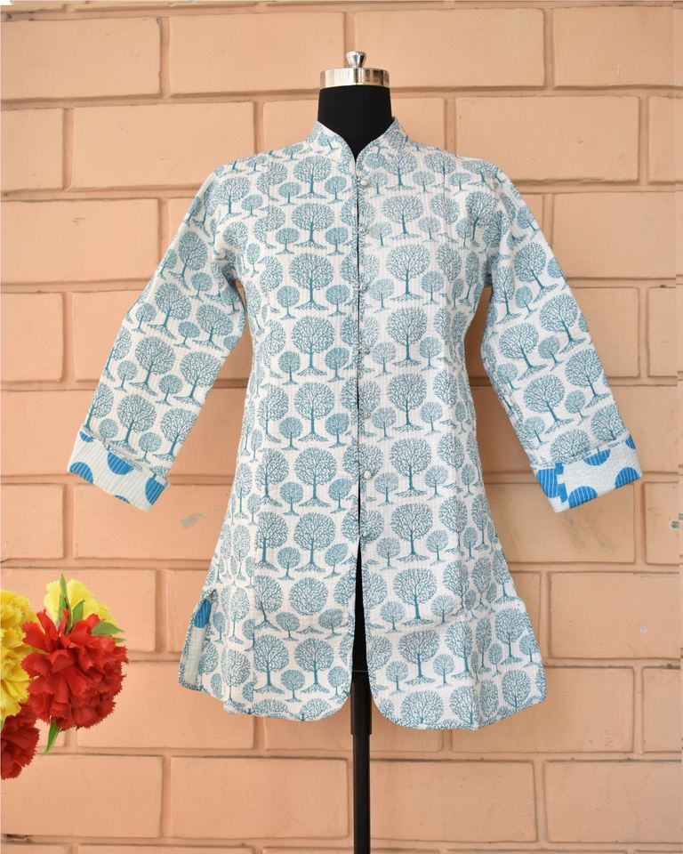 100% Cotton Indian Jacket Woman Stylish Indian Floral Quilted Jacket Hand Block Printed Cotton Quilted Jacket Reversible