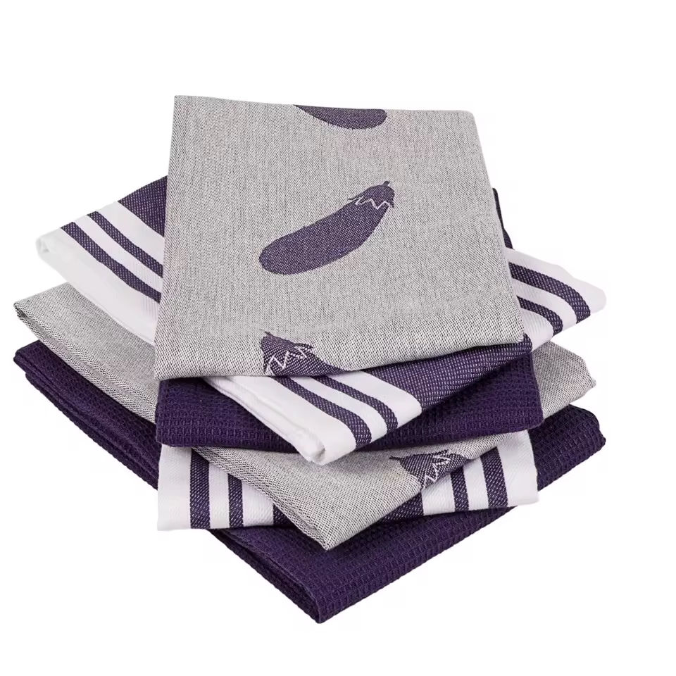100% Cotton Jacquard Kitchen Towel Set - Violet