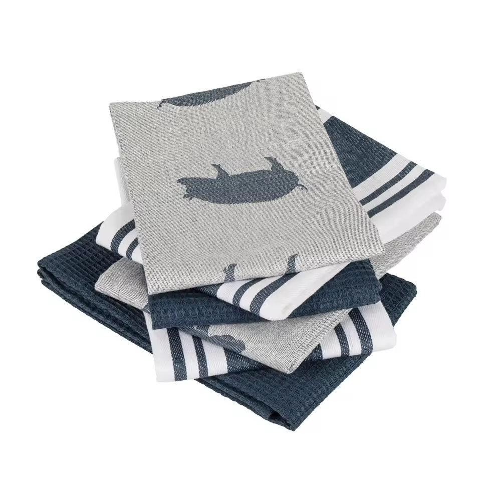 Dark Green Jacquard 100% Cotton and Bamboo Kitchen Towel Set Quick-Dry Woven Striped Pattern Sustainable for Home Use