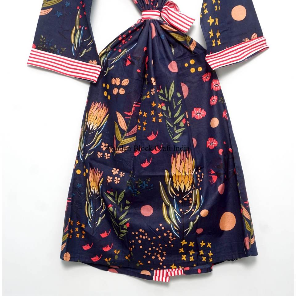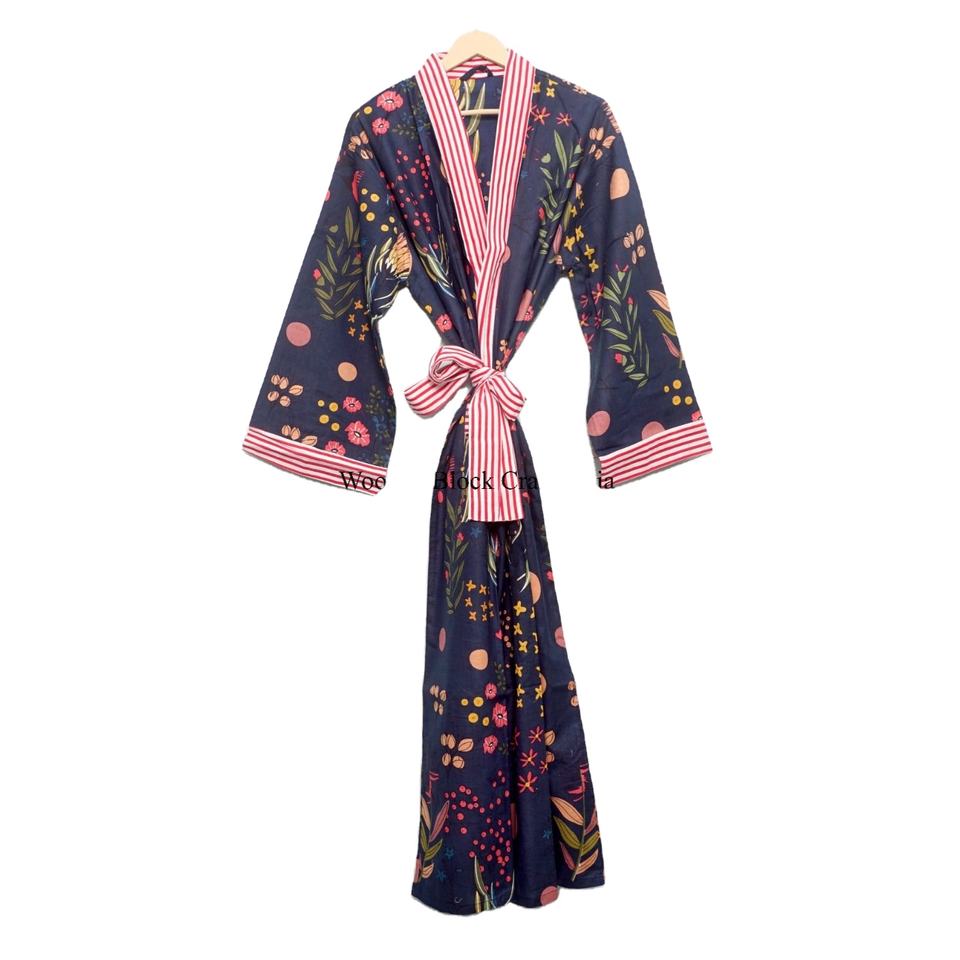 100% Cotton Kimono Robes Pure Cotton Kimono Hand Block Printed Floral Cotton Kimono Shower Robe belt for Wholesale price