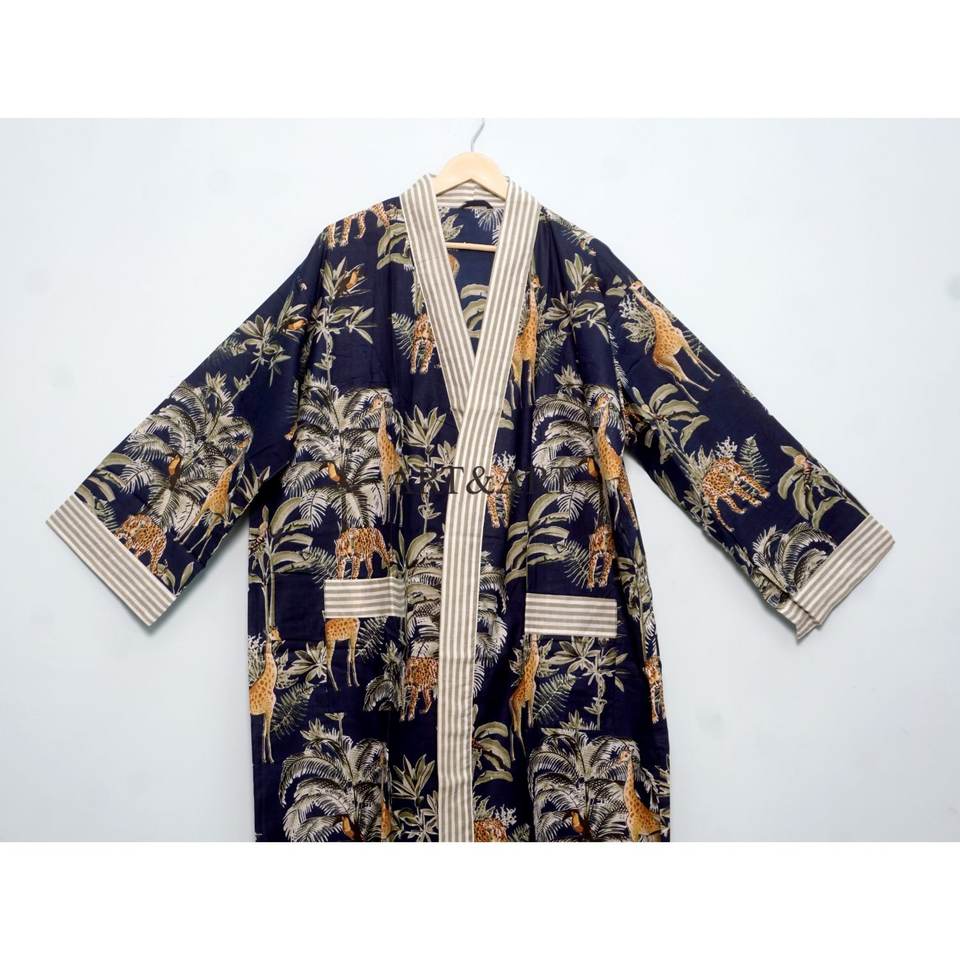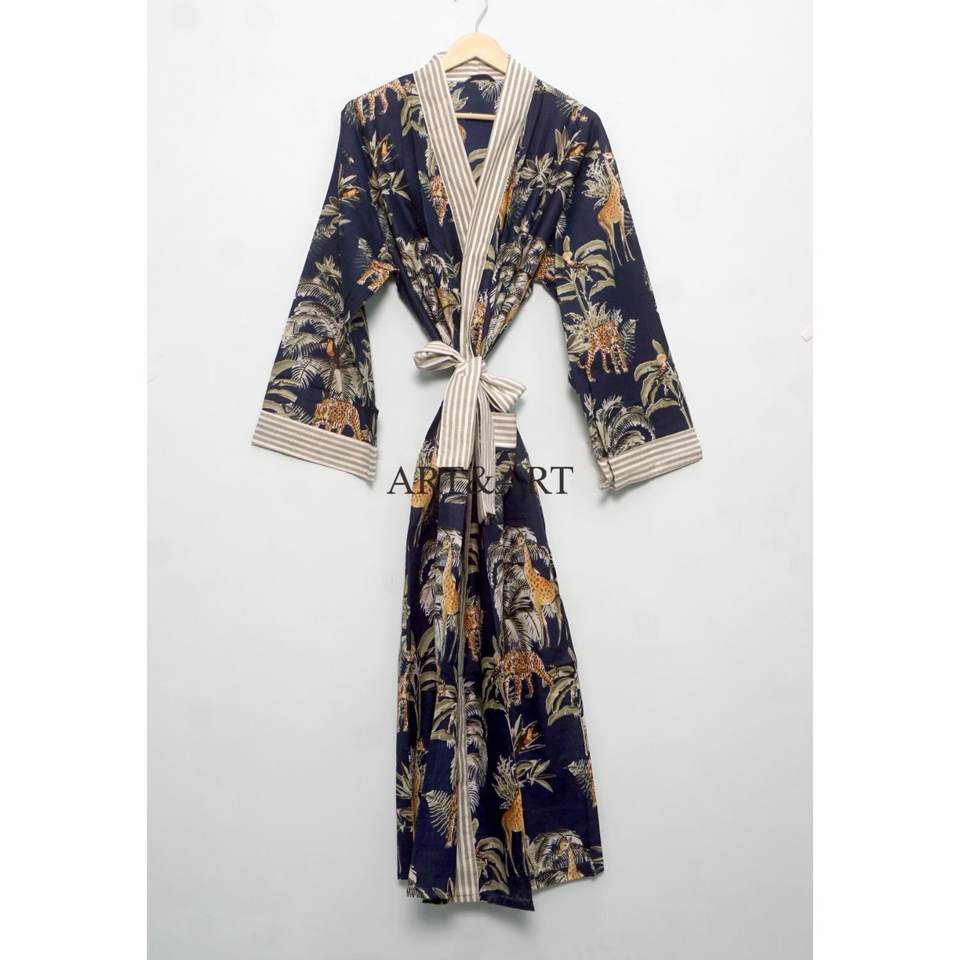 100% Cotton Kimono Robes Pure Cotton Kimono Hand Block Printed Floral Cotton Kimono Shower Robe in Wholesale price for sleep