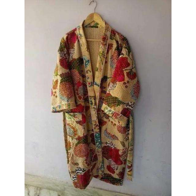 100% Cotton Knitted Elegant Tie Dye Kimono Soft Thermal Breathable Quick Dry Summer V-neck Full Length Drawstring Closure Full