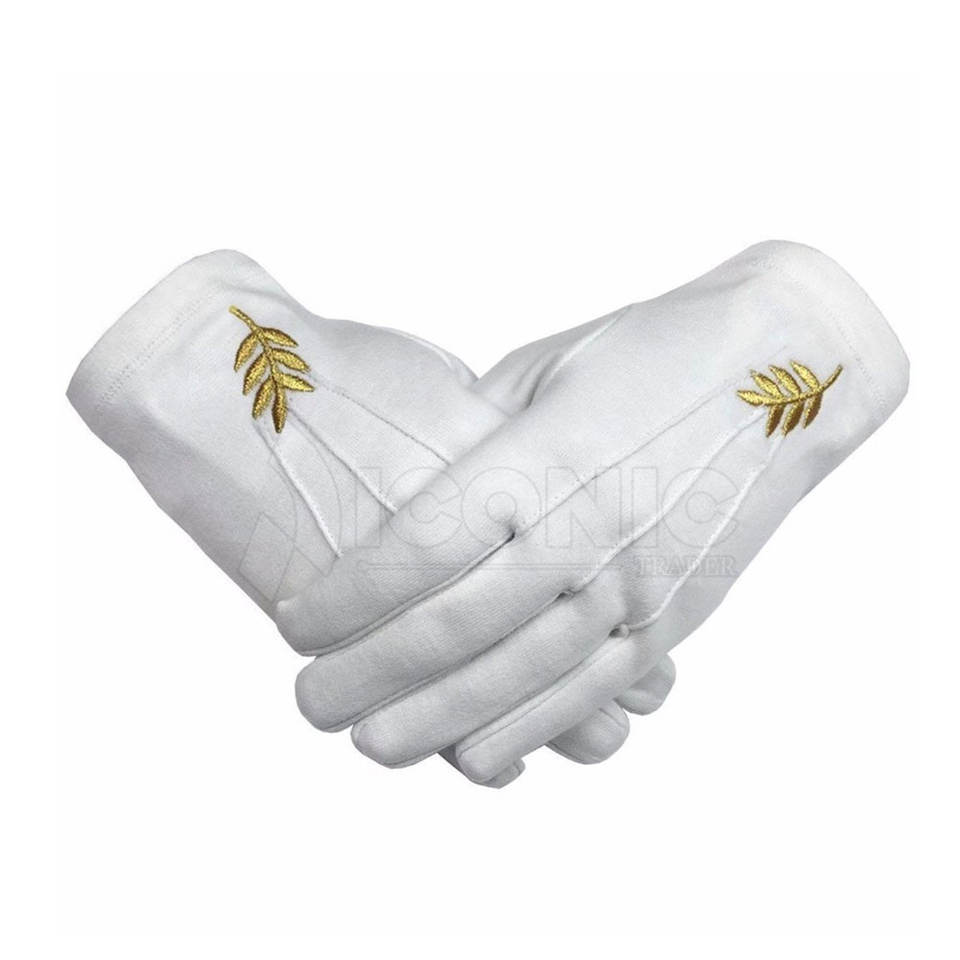 100% Cotton Masonic Gloves Compass & G Blue Machine Embroidery Queen of the South Glove - Pure White Cotton
