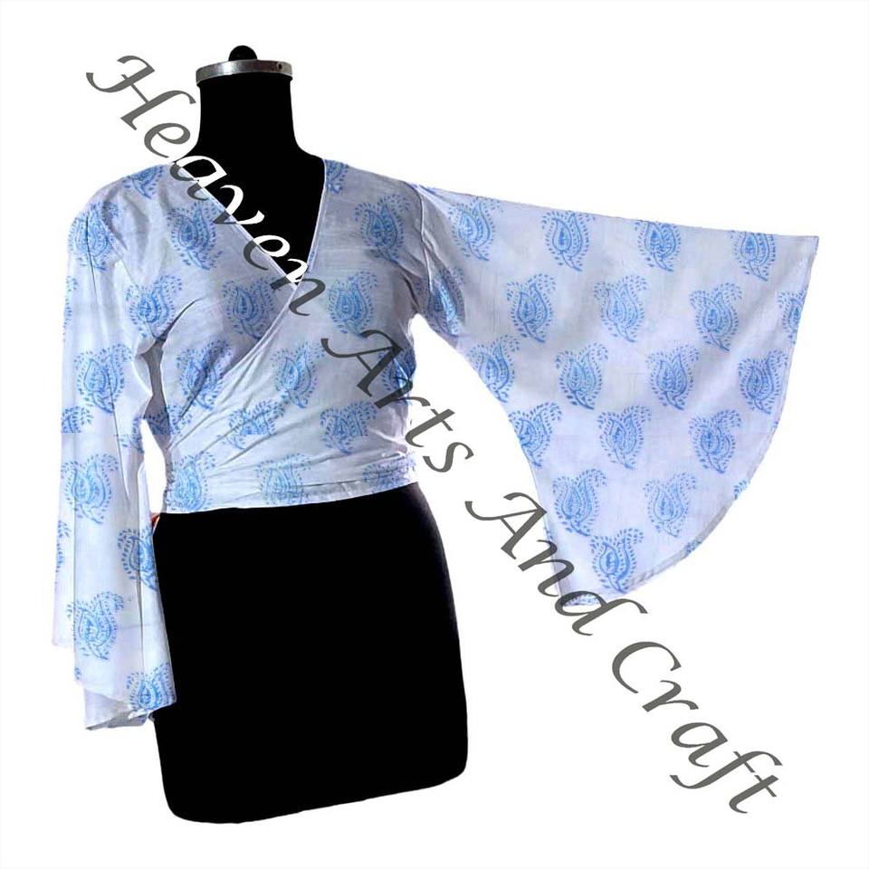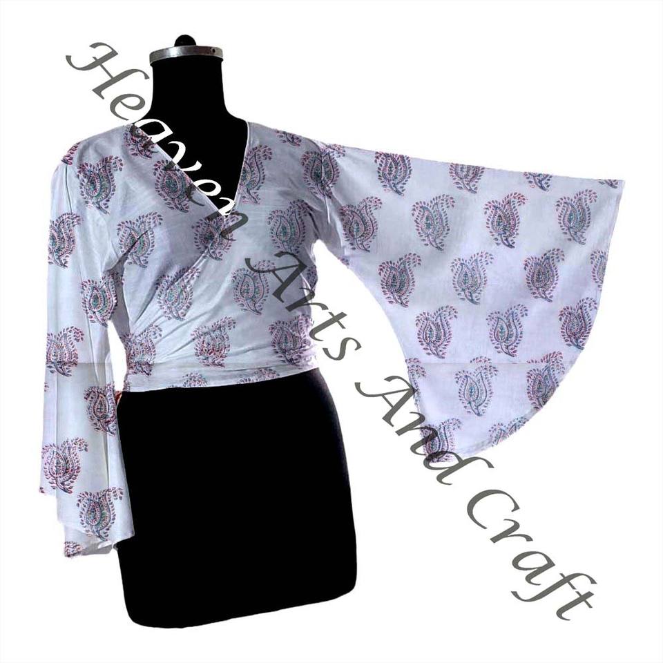 Model Number:Hand Block Print Cotton Tie Tops Bell Sleeves