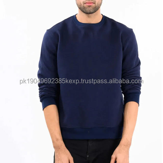 100% Cotton Men Plain Hoodies Sweatshirt Crew Neck Men's Loose Blank Casual Fleece Winter Navy Blue Basics Sweatshirt