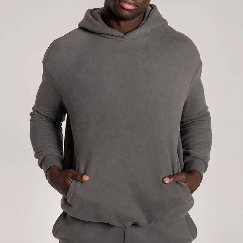 100% Cotton Men's Oversize Hoodie Custom Printed Basic Sweatshirts with Kangaroo Pocket Embossed Puff Technics Long Length