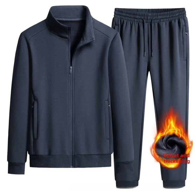 100% Cotton Men's Sportswear Sets Breathable Fleece Hoodie Solid Print Casual 2-Piece Fitness Leisure Clothing Winter Collection