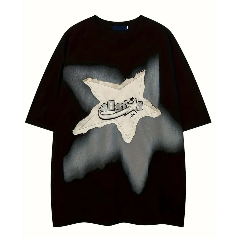 100% Cotton Men's T-shirts Casual Summer Star Patchwork T-Shirt Relaxed Fit, Round Neck Tee With Unique Geometric Design