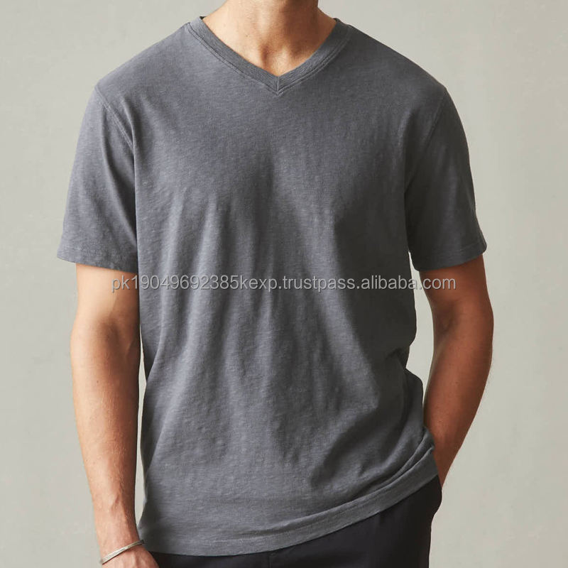 100% Cotton Men's Tshirts Short Sleeve V-neck Tshirt Summer Mens T Shirts Custom logo T-shirts Organic Jersey Tshirt Oversize