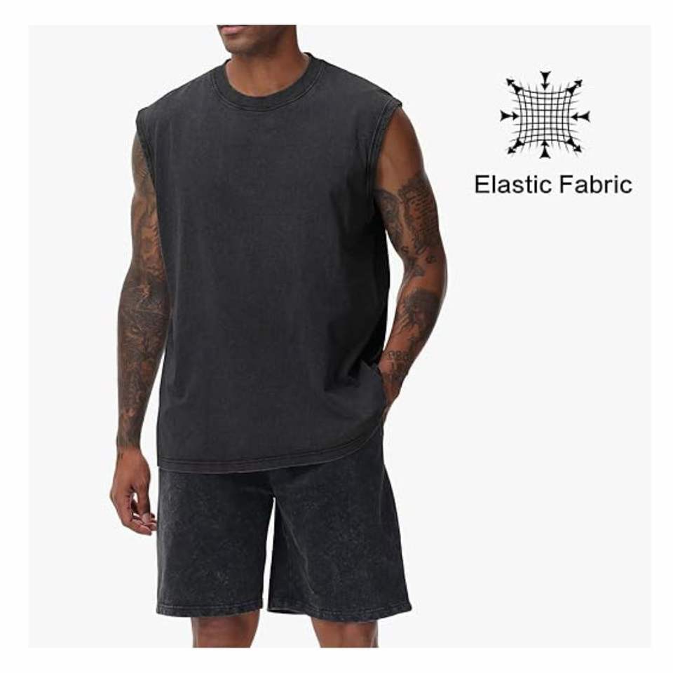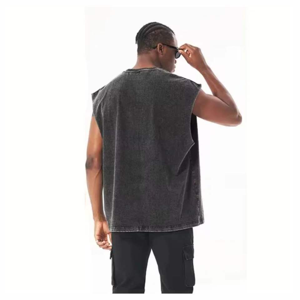 100% Cotton Men's Vintage Street Wear Tank Top Vest Oversized Fit Stone Washed Breathable Knitted Material Gym Use Customized