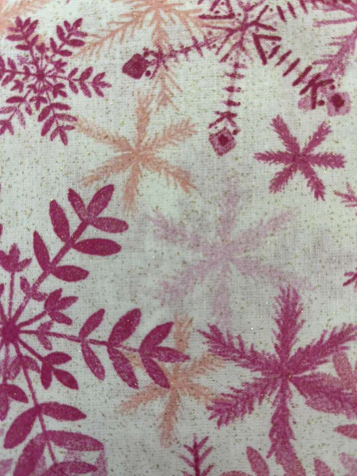 100% Cotton Multi-Purpose Festive Snow Pink Fabric Woven Pattern with Glitter Durable 112x300 cm Plain Style