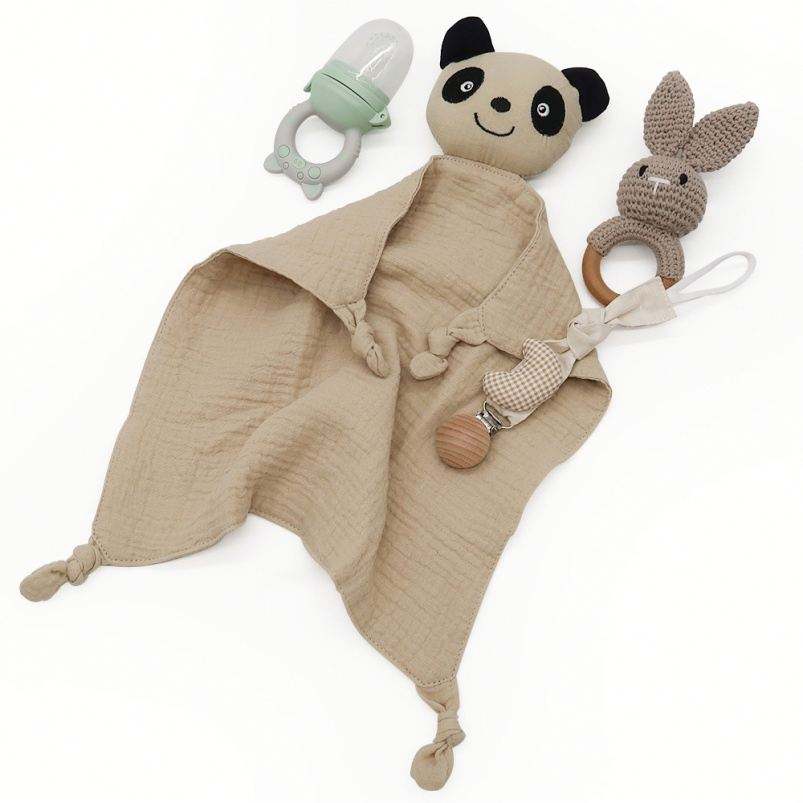 100% Cotton Muslin Teething Cloths Towel Bunny Soothing Baby Security Blanket Toy Set
