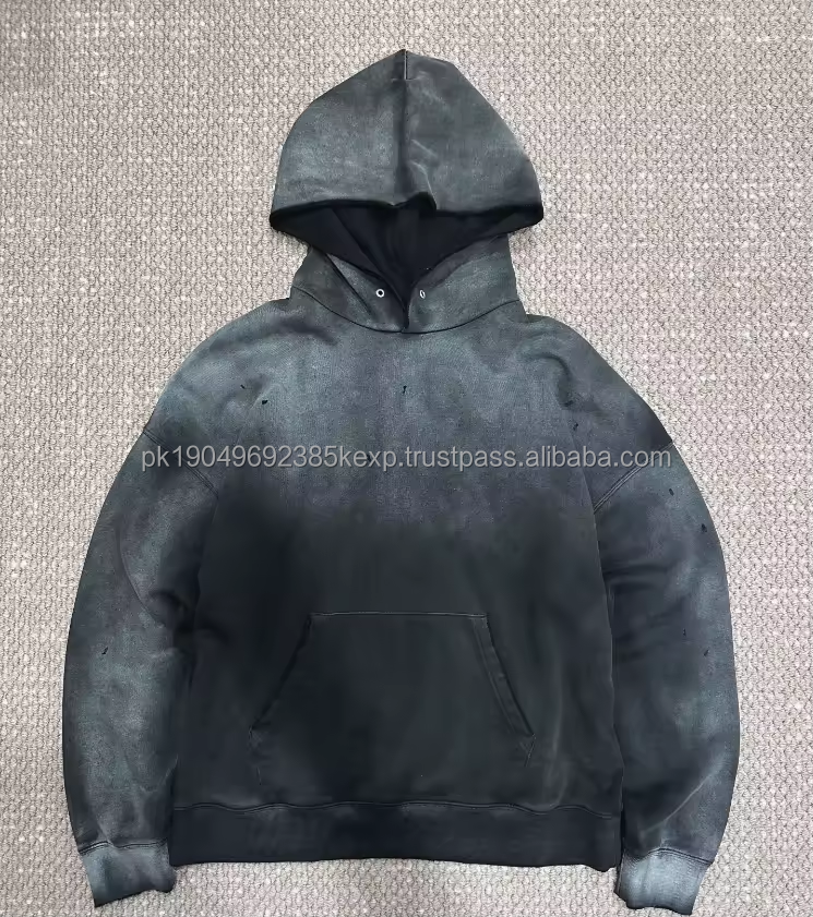 100% Cotton Oversize Blank Vintage Distressed Acid Wash Hoodie & Sweatshirt Casual Stone Wash Hoodies Men