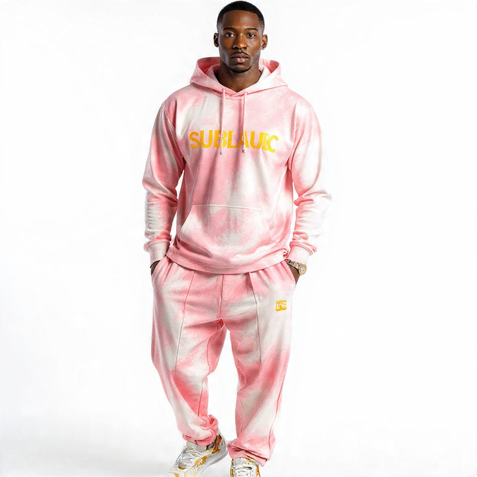 100% Cotton Polyester T Shirt Tracksuit Men Summer Tie Dye Sublimation Tee Shirt Trouser Two Piece Set Long Sleeve Tee Top Mens