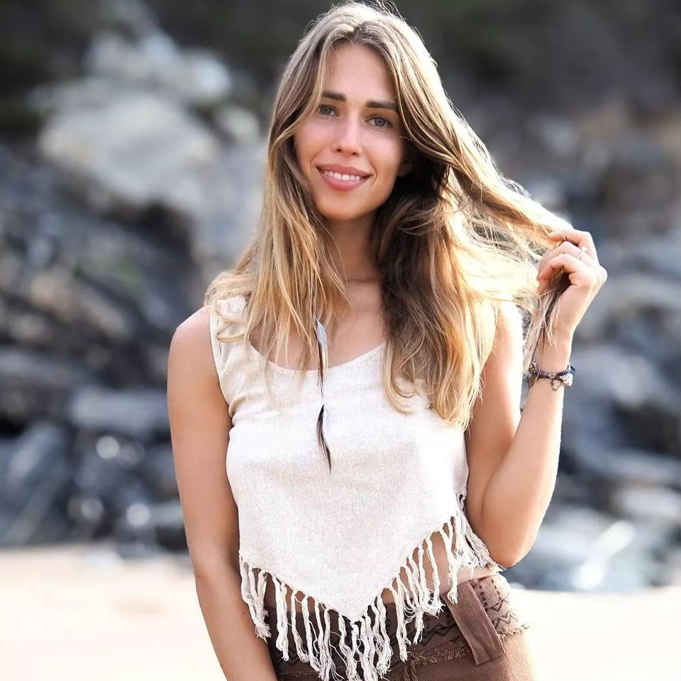 100% Cotton Raw Silk Fringe Crop Top Breathable Tribal Ethnic Top with Solid Pattern and Tassel Decoration