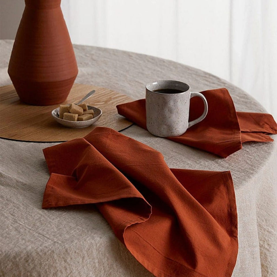 100% Cotton Rust Orange Party Cup Dishes Lightweight Classic Style Reusable Napkins for Home Use Modern Napkins for Wedding