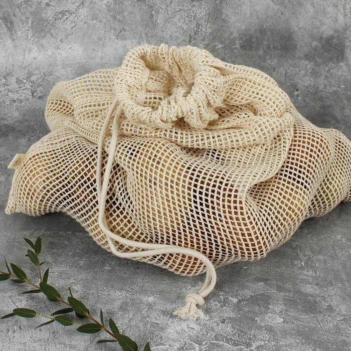 100% Cotton Soft Mesh Bag with Drawstring Closure and Rope Handle Customized for Natural Color Vegetables Shopping