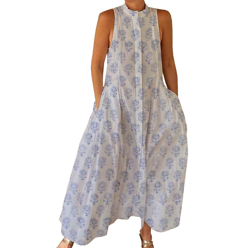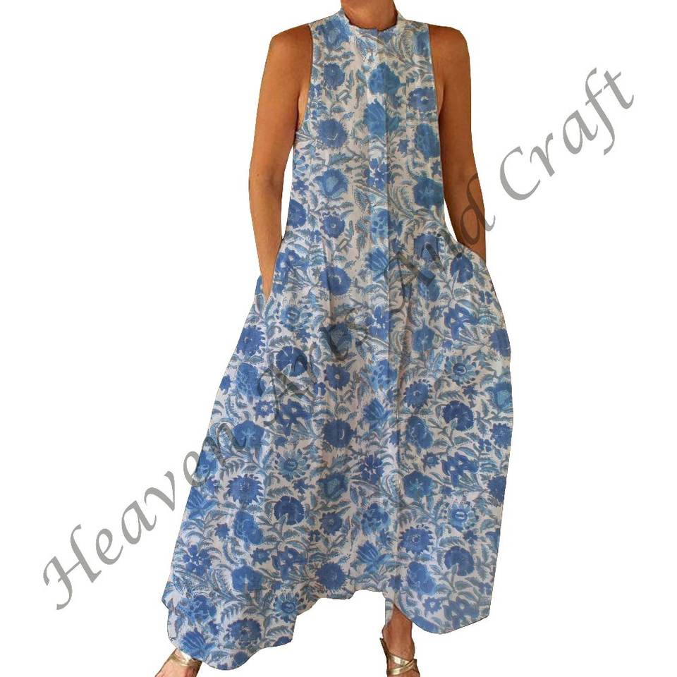 100% Cotton Summer Casual Jumpsuit Floral Hand Block Printed Soft Woven with Zipper Closer For Spring/Summer Adults BPJS117