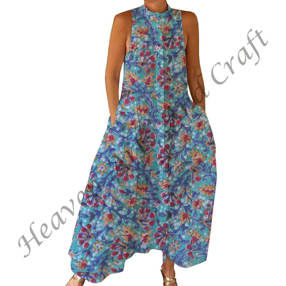 100% Cotton Summer Casual Jumpsuit Floral Hand Block Printed Soft Woven with Zipper Closer For Spring/Summer Adults BPJS066