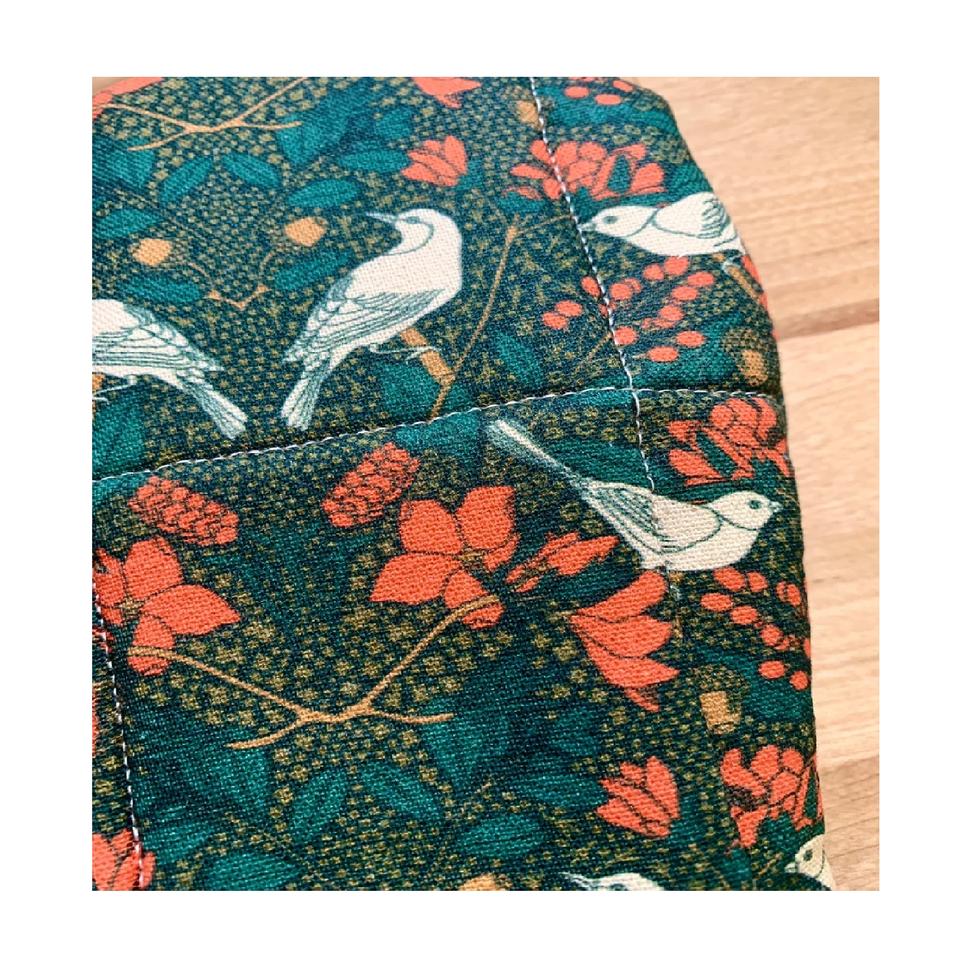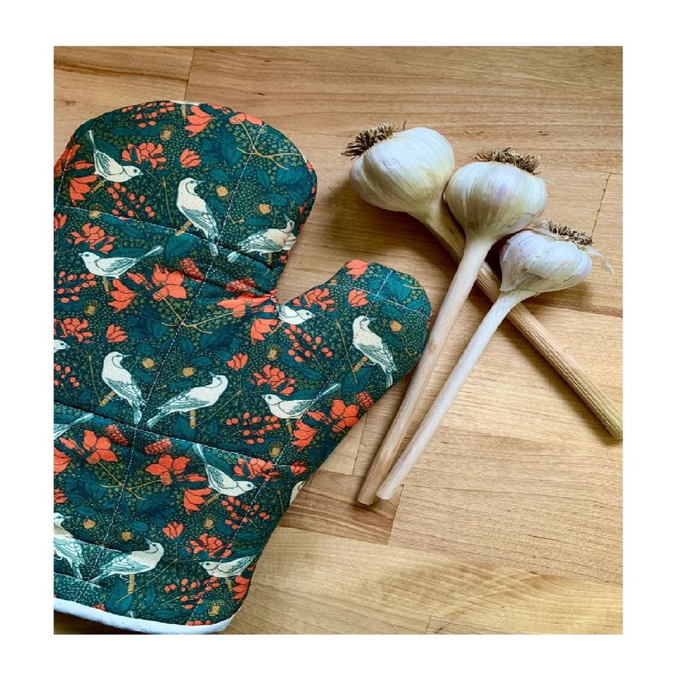 100%Cotton Sustainable Reusable Beautiful Birds & Orange Flowers Green Oven Mitt For Fall & Winter Work Use High Quality