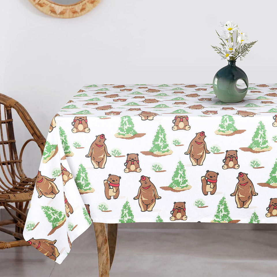 100% Cotton Table Cloth High Quality Woven Technique 150 X 300 cm 180 Gsm White with Brown Print