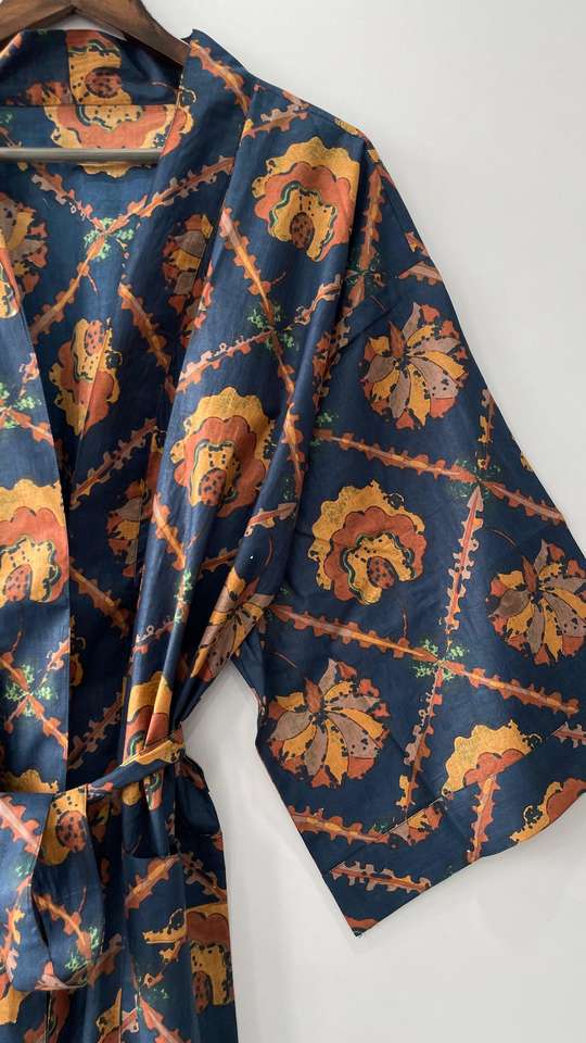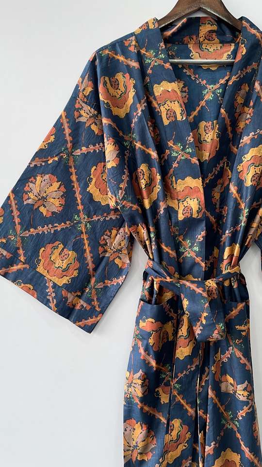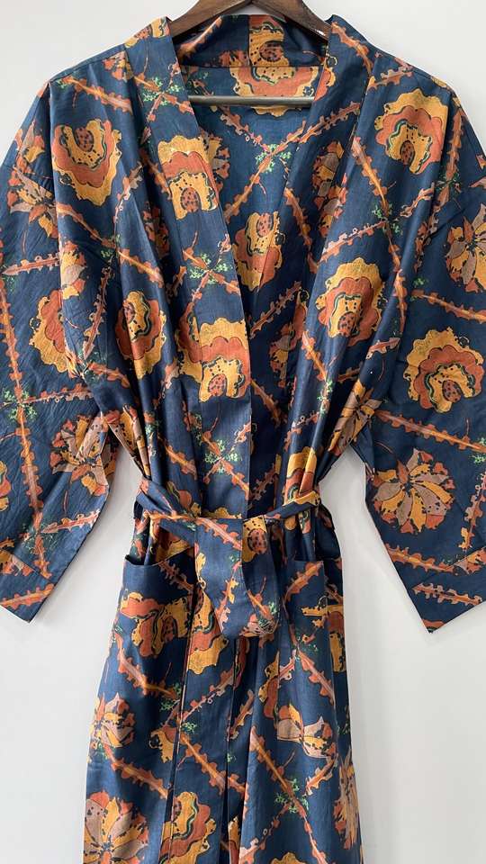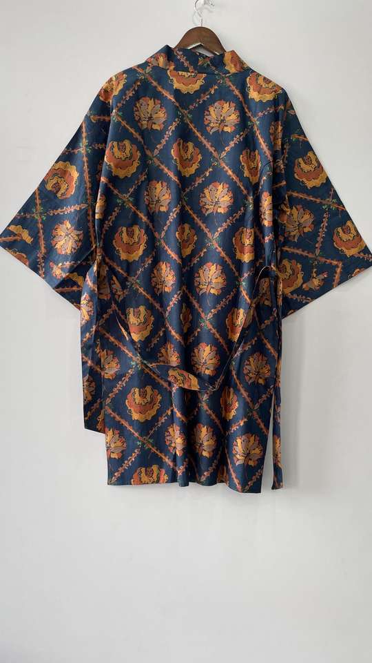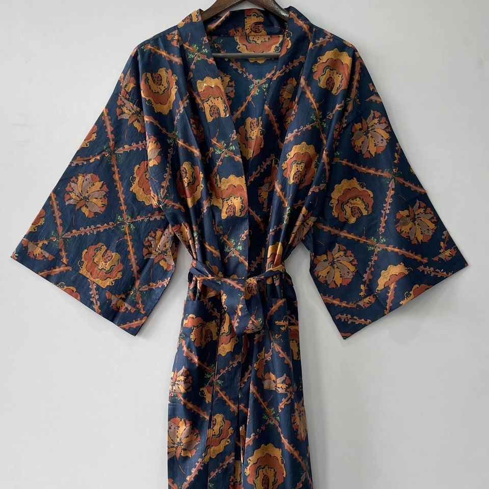 100% Cotton Woven Thermal Indian Style Kimono Robe Knee Length Bathrobe Dressing Gown Drawstring for Winter Beachwear-ODM Supply