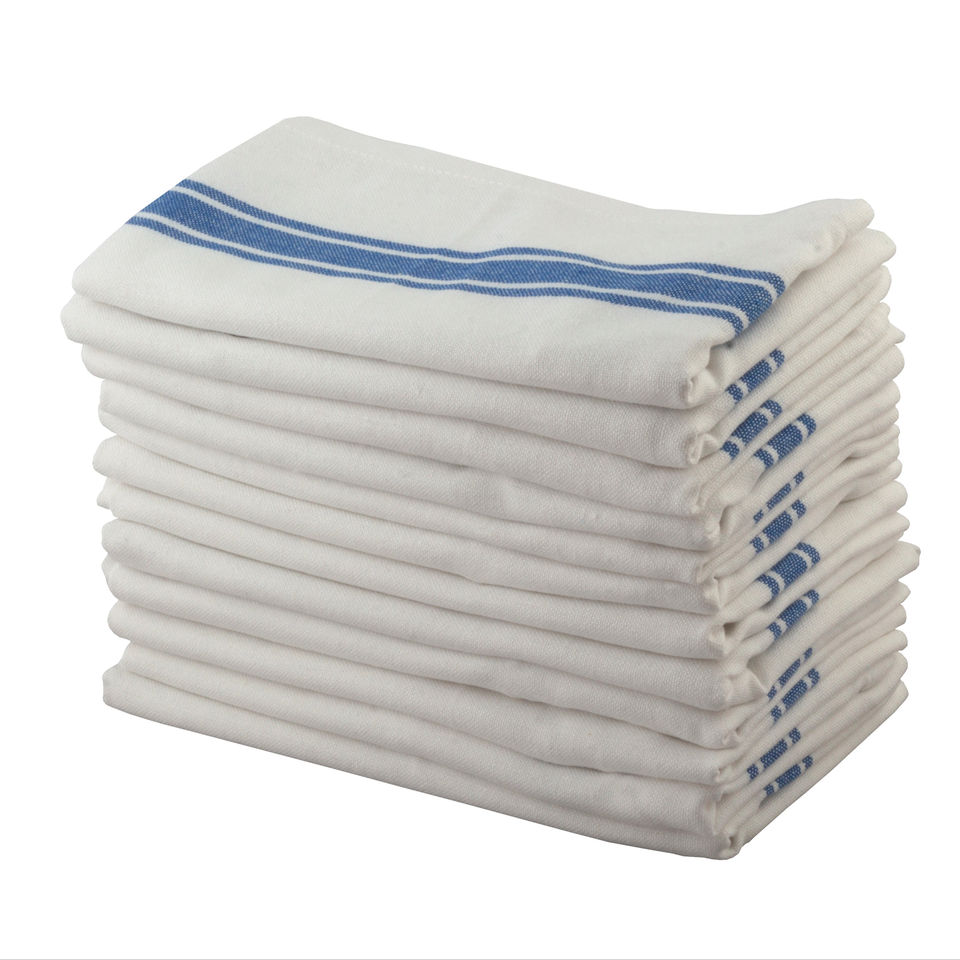 Vintage Strips Blue 100% Cotton Golf Kitchen Towel Pack 12 Home Use Checkered Pattern Linen Microfiber Bamboo Material Children