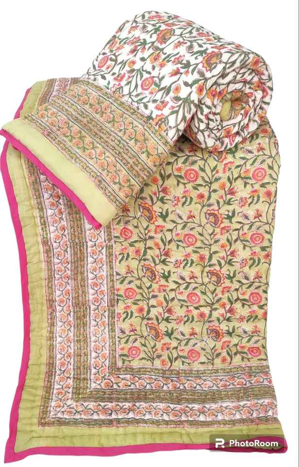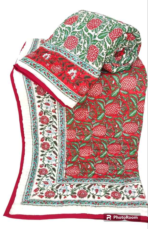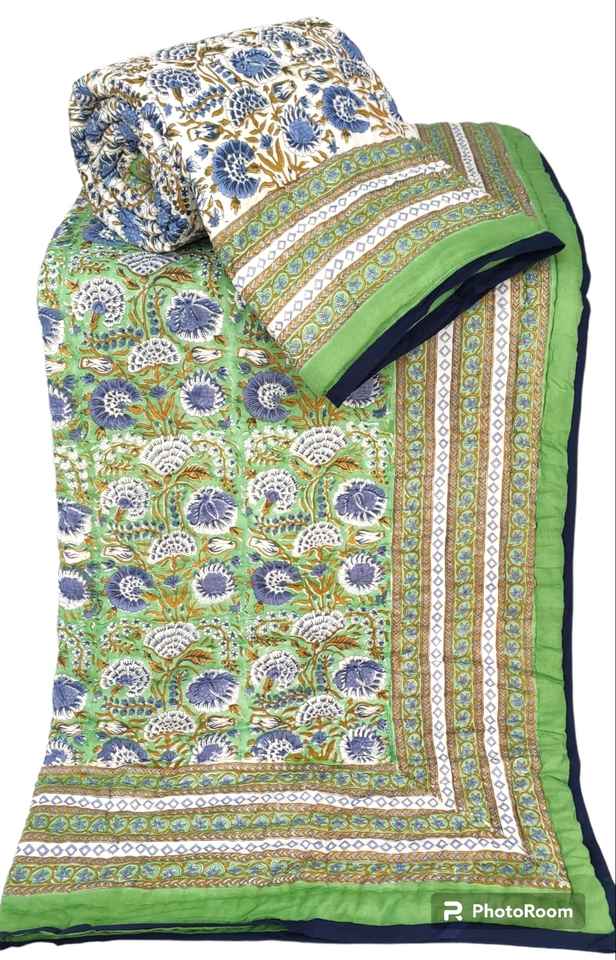 100% Cotton Traditional Handmade Quilt Hand Block Printed Reversible and Comfortable Lightweight Queen Size Cotton Quilt