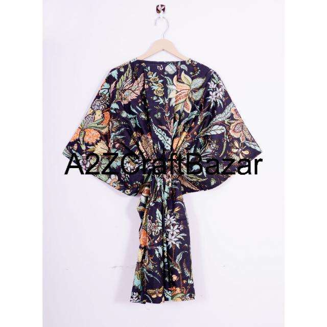 100% Cotton V-Neck Short Sleeve Midi Kaftan Dress Ruffles Boho Floral Print Regular Fit Breathable Summer Party Wear Casual Sexy